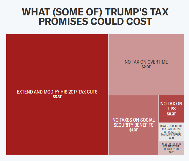 - Trump's tax cut is estimated to be $300 billion a year and fiscal year 2024 US Government collected about $77 billion in tariffs