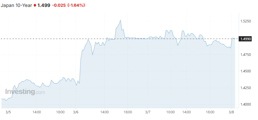 - JGB 10yr crossed 1.5% for the first time after 2009. Influenced by sell off in Europe and Trump's tariffs.